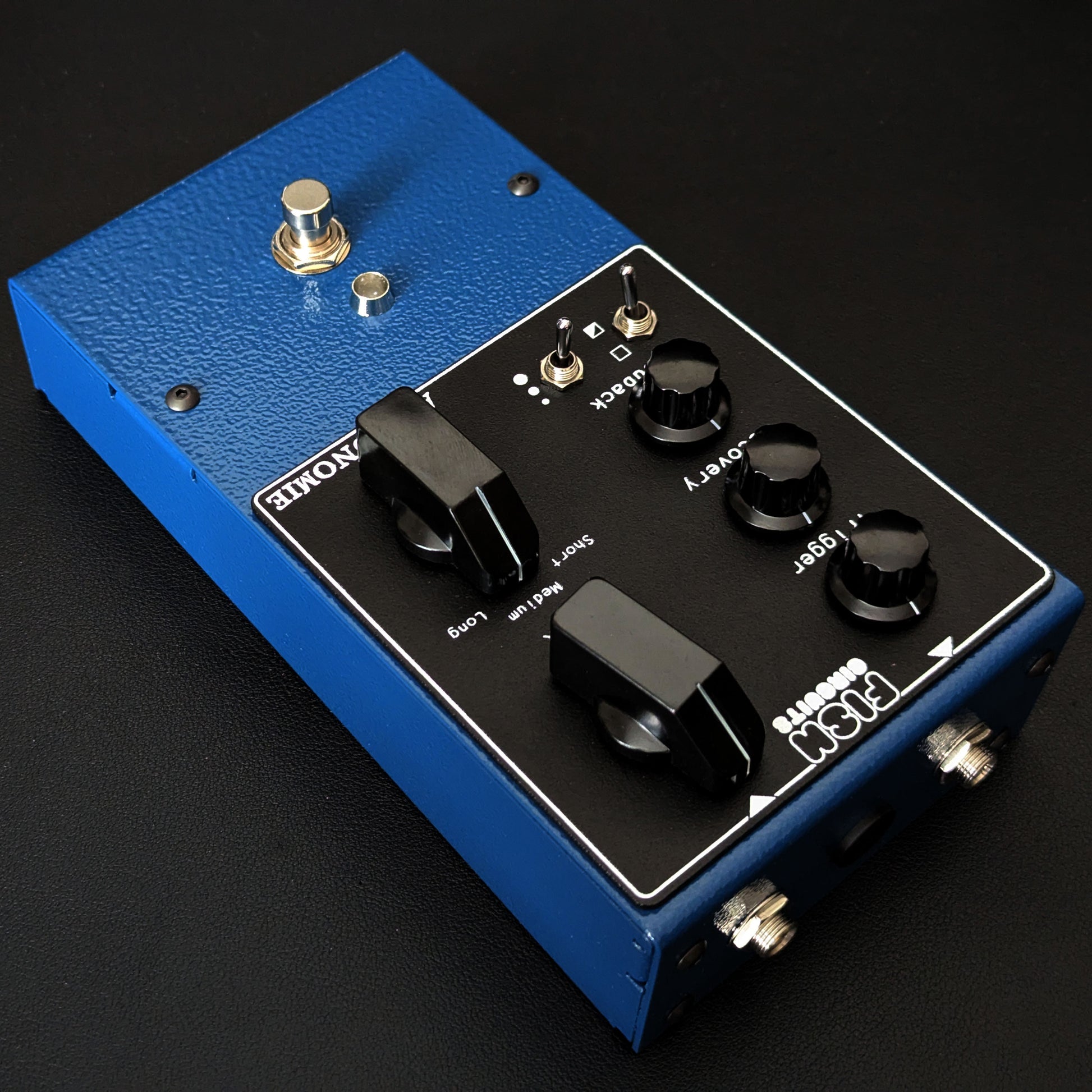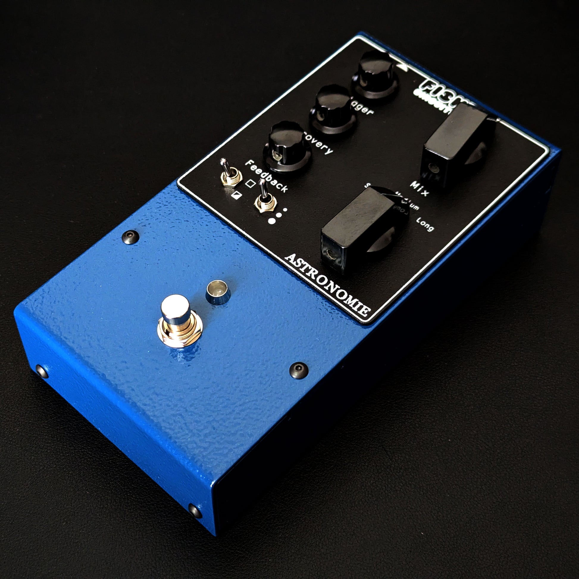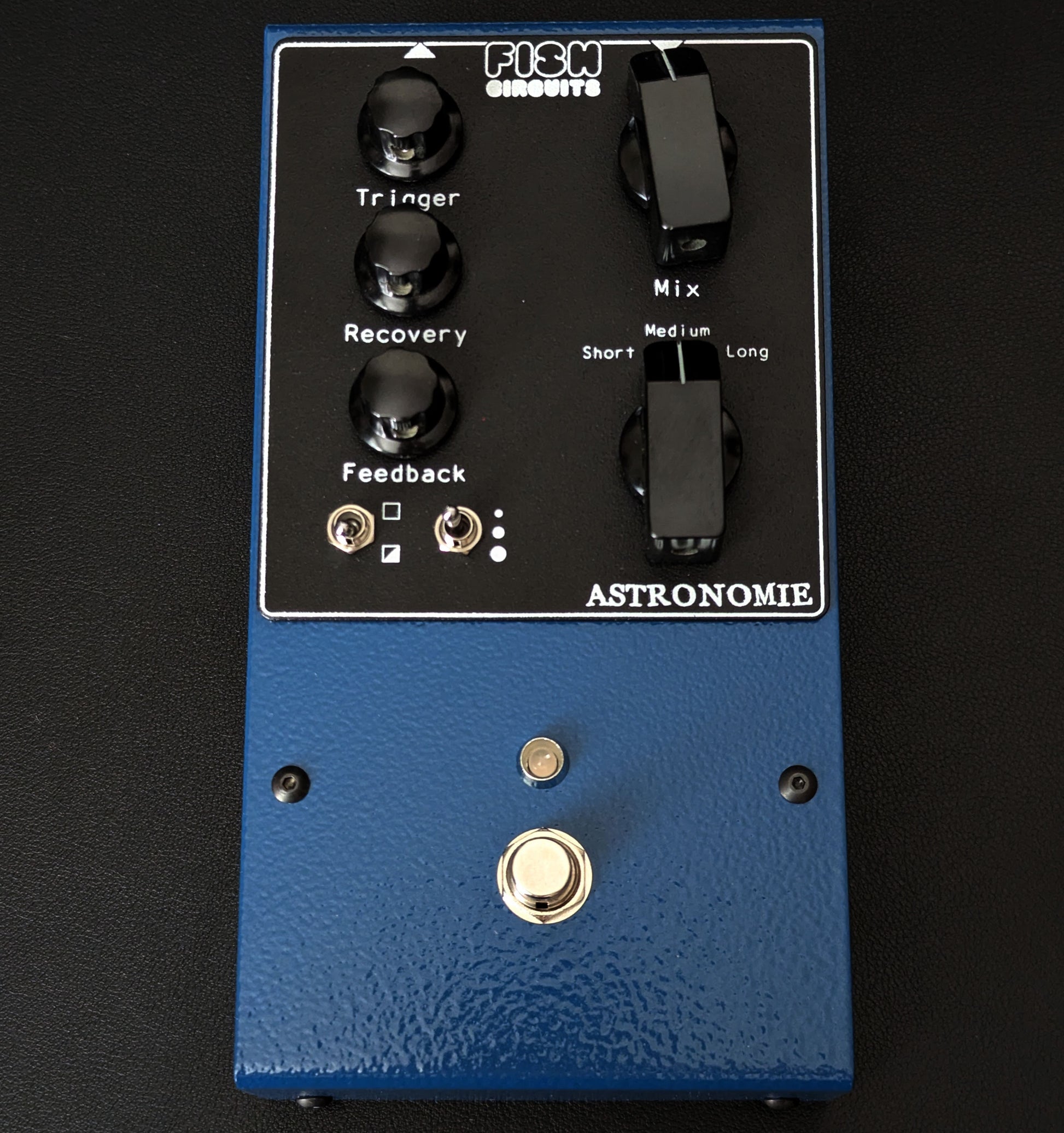 The Fish Circuits ASTRONOMIE is a digital spring reverb with 3 decay settings, 3 tone presets, and an adjustable feedback. That's pretty common. What's not as common is the pedal’s ability to dynamically lower the effect’s volume with each note picked. Imagine having a reverb that swells in automatically as you let your chords ring, or playing a tight rhythmic riff which is not muddied while being able to have a long reverb trail once you stop playing. We’re not smart enough to think of every possible way to use this effect, but it’s easy to see how vast the possibilities are once the ASTRONOMIE falls into the hands of a creative mind.